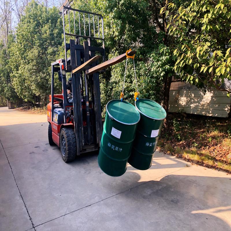工人们正在为森美集团到达的橙汁原料进行装卸